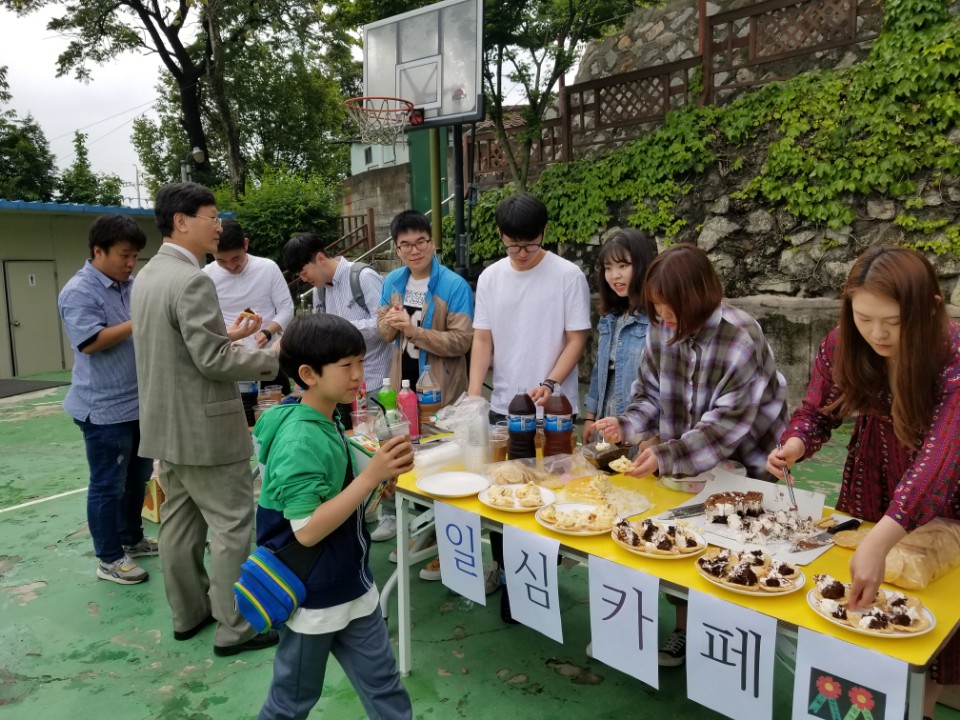 작년에 이어서 올해에도 5월 둘째주 어버이 주일 점심시간 식당 앞 공터에서 1청년이 교회 어르신들을 섬기는 마음으로 맛있는 차와 다과를 대접하는 시간을 가졌습니다. 많이 준비한 것은 아니지만 1청년의 따뜻한 마음이 전달되는 귀중하고 소중한 시간이었습니다. 어머니, 아버지 감사합니다. 사랑합니다. ♡