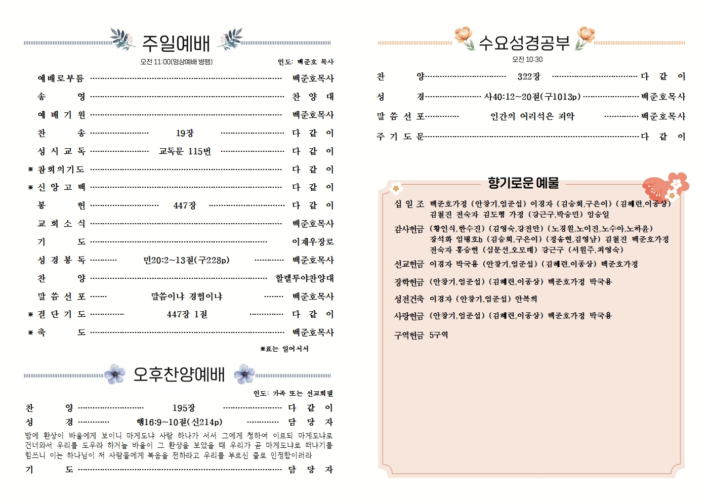 예배 및 모임안내